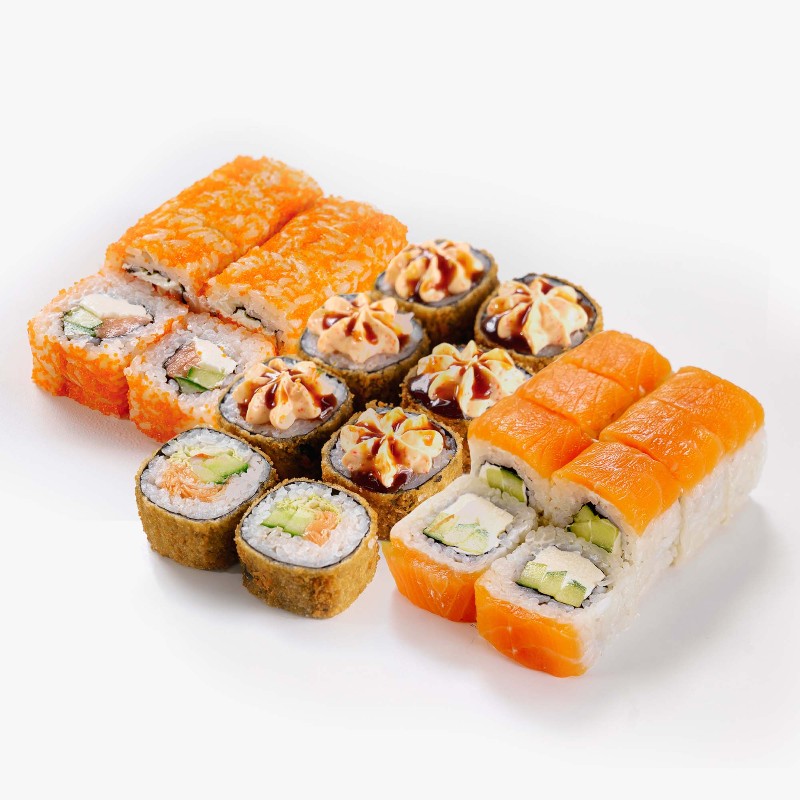 Свежий лосось, нежный творожный сыр и хрустящий огурец. Икра масаго придаёт роллу особый вкус и аромат.