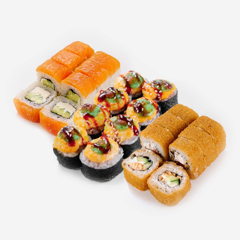 Нежный лосось, свежий огурец и воздушный творожный сыр завёрнутые в рис, — это удачное сочетание, которое никого не оставит равнодушным.